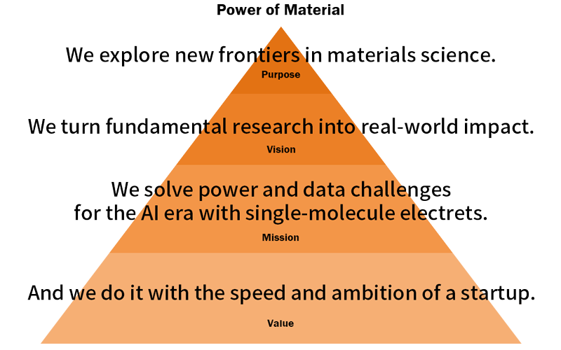 After returning to Hiroshima University in 2021, he led the commercialization of single-molecule electret technology and co-founded the company in 2023.
