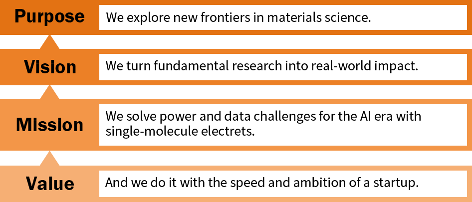 Business Activities ・Manufacturing and commercialization of single-molecule electrets
